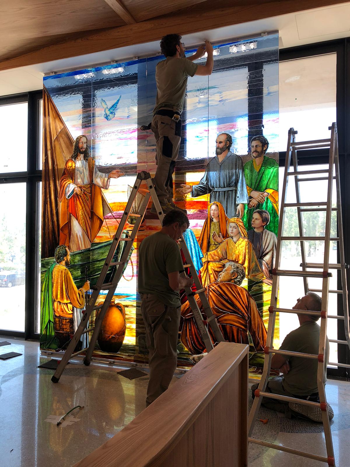 Realizza tre grandi vetrate per la Chiesa Matrice in Pallazoo S. Gervasio